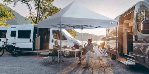 - For added stability, use weight bags or tie-downs.