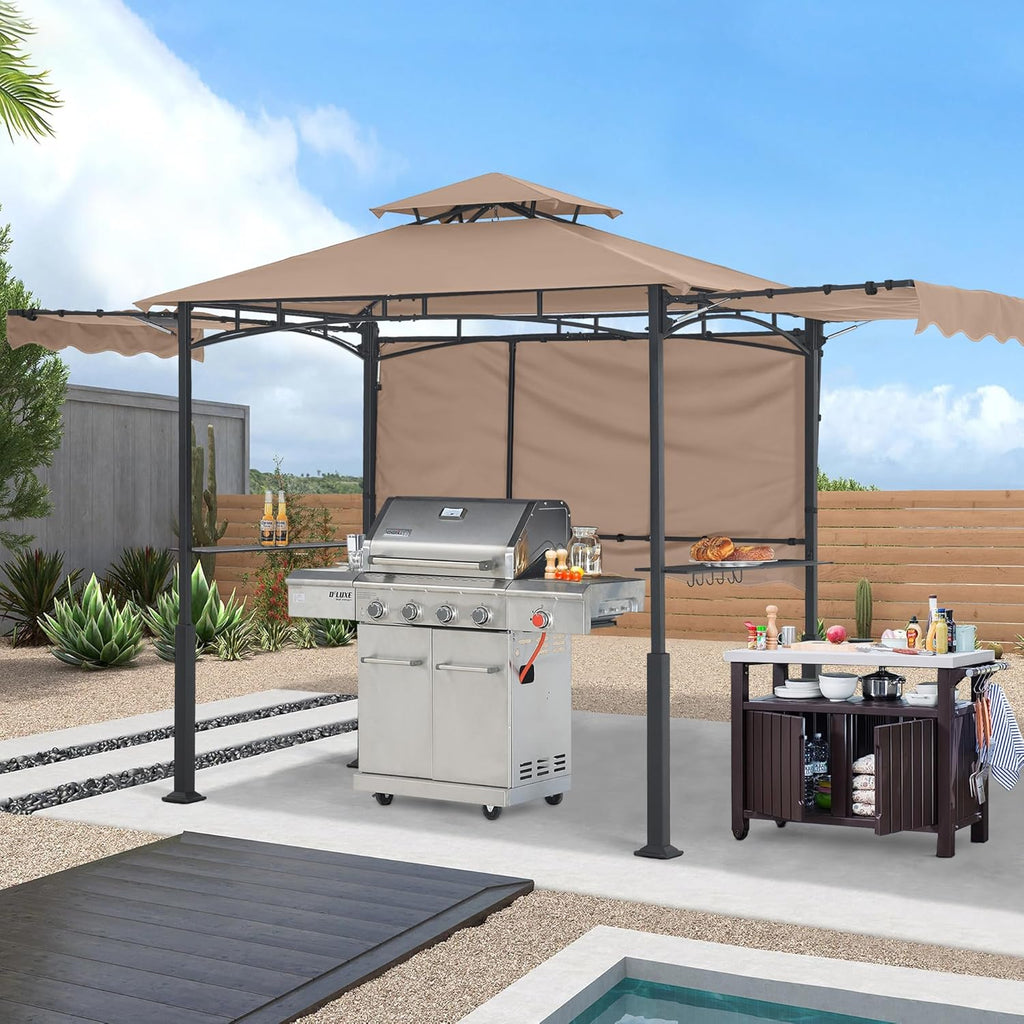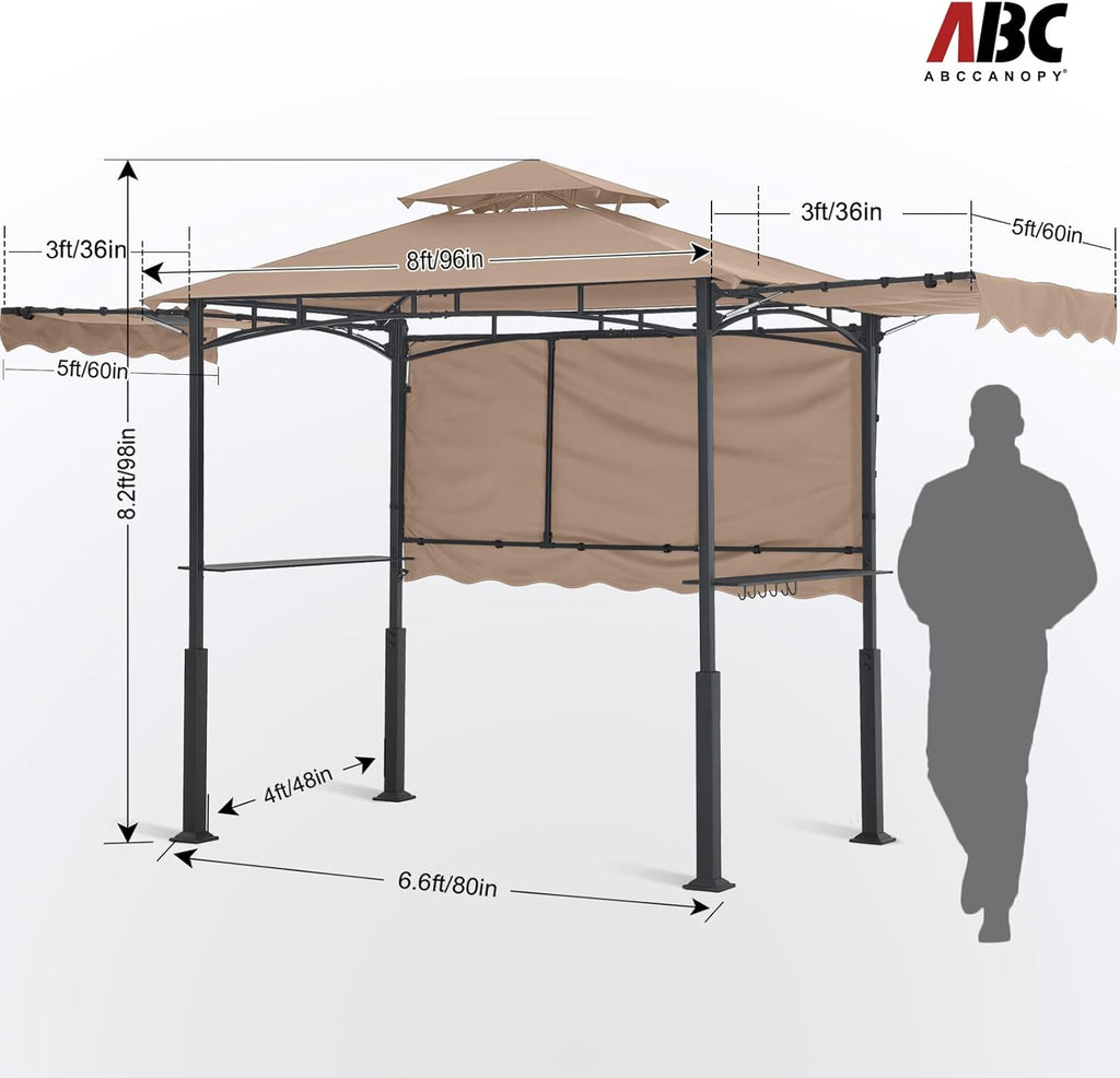 - Ideal for outdoor grilling: This grill gazebo creates a perfect spot and patio shade for you to enjoy BBQ party and cooking with 8' x 5' large footprint in the backyard.
