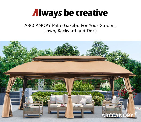 - PCAKING & AFTER-SALE: Including 10x20 ft steel frame + gazebo top + 6 pole coverings (Notice: Only pole coverings, not side curtains.) + nettings. Assembly required, but all necessary hardware and instructions are included, easy to assemble. ABCCANOPY promise 1 year frame quality repair, 6 months gazebo top and mosquito nets quality repair. If you have any other questions, please do not hesitate to contact us.