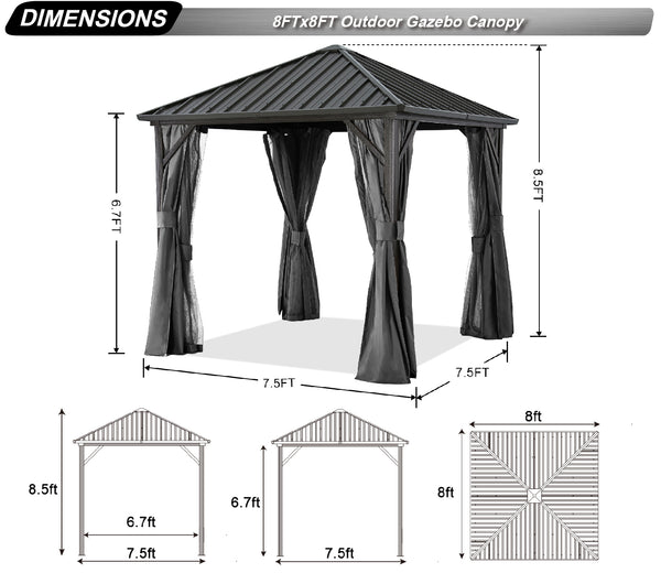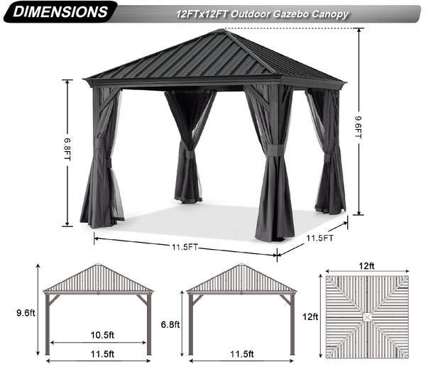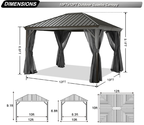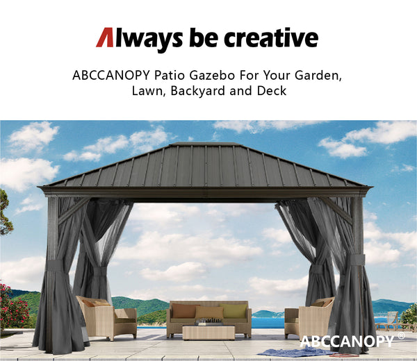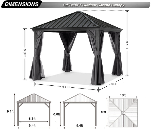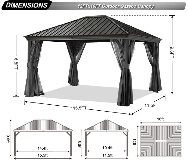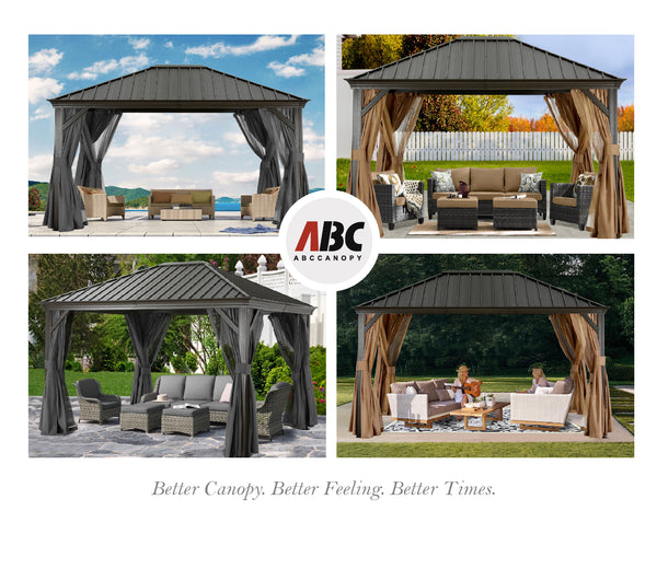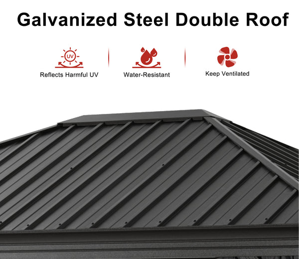 - All-weather Galvanized Steel Roof: Compared to traditional fabric roofs or polycarbonate roofs, this superb and durable galvanized steel roof is suitable for all seasons and lasts longer. The metal roof is protected by high performance coating that prevents fading, rust and is sturdy to withstand wind, rain and snow, shielding you from the sun and harmful UV rays.