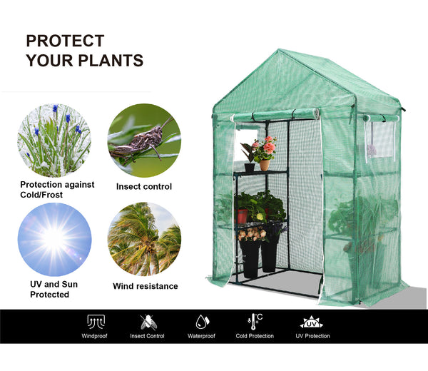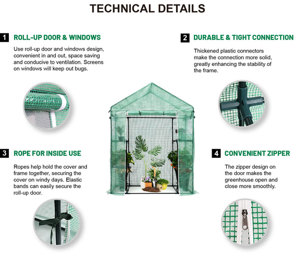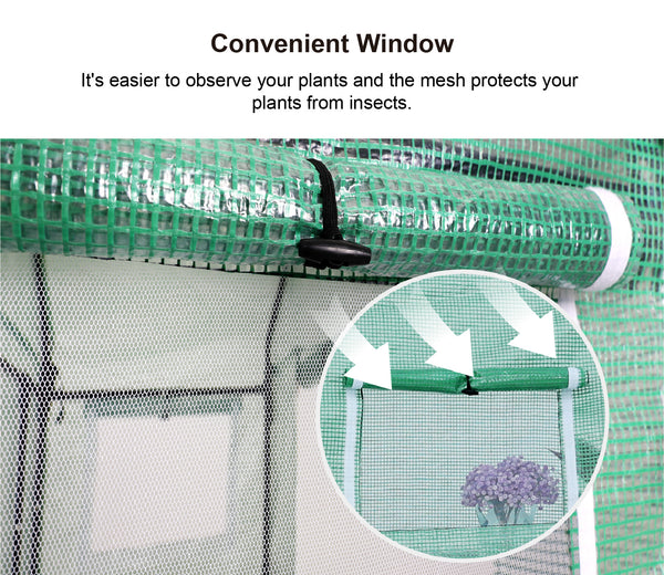 - Stable Greenhouse: Structured with heavy-duty rust-resistant tubes for extended durability. Thickened transparent PE cover which protects the plants.