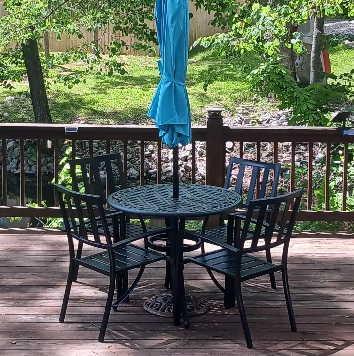 - EASY ASSEMBLY: The base is easy to install and use, double hand-turn knobs for securing umbrella to the base.