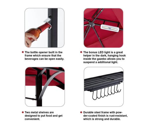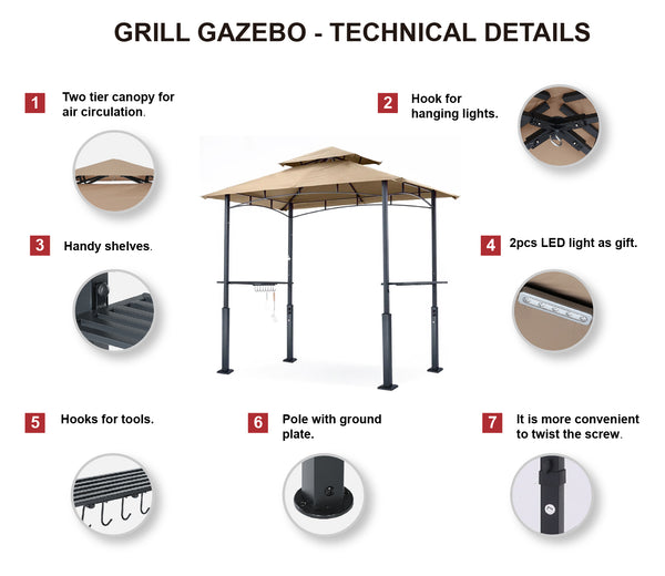 - Ideal for outdoor grilling: This grill gazebo creates a perfect spot and patio shade for you to enjoy BBQ party and cooking with 8' x 5' large footprint in the backyard.