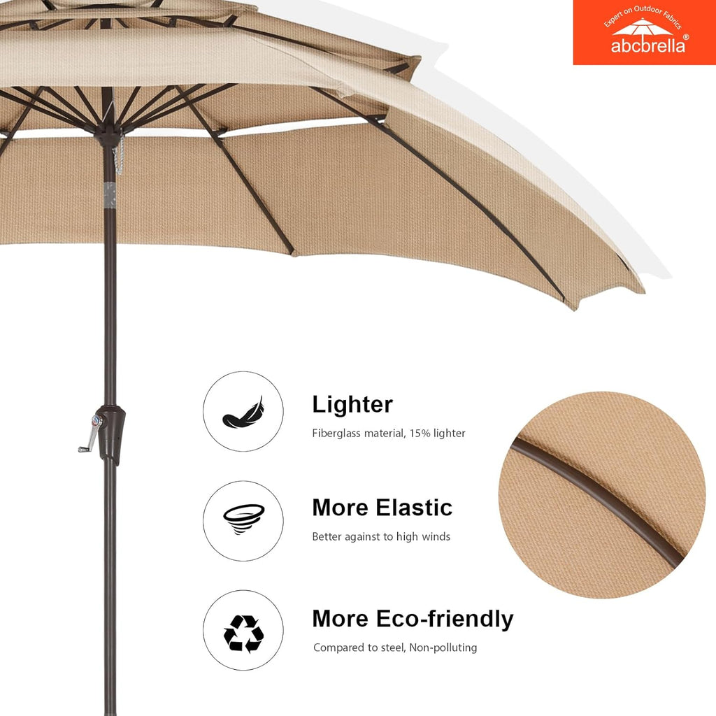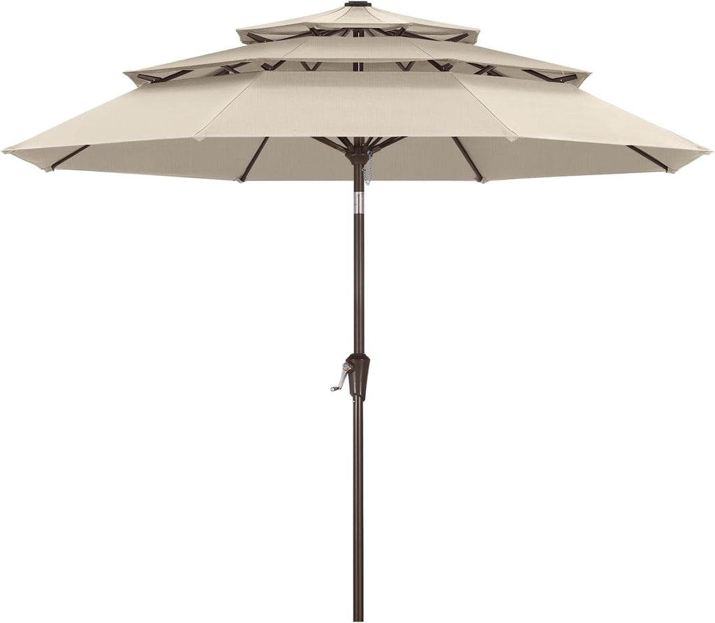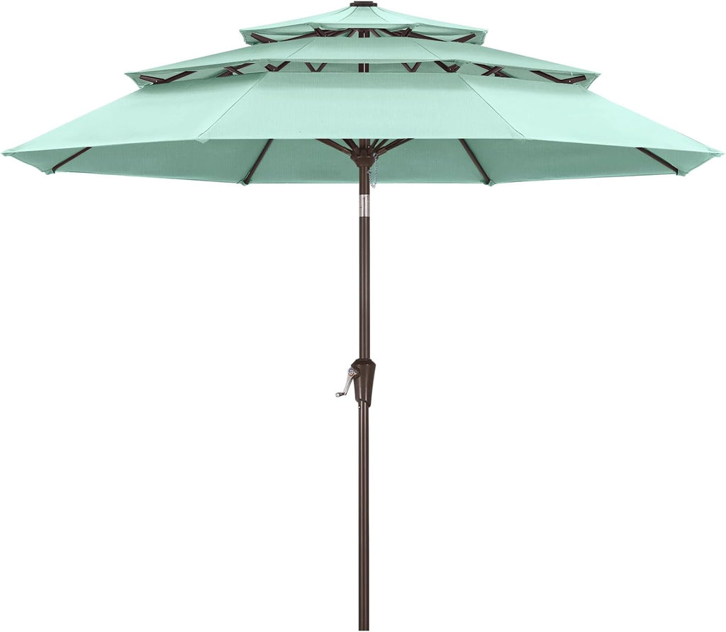 - Avoid Heat Buildup: The 3-tiers top vent ensures a steady airflow, preventing any stifling heat buildup. Moreover, crank lifting mechanism to smoothly open and close the umbrella with no effort. Support 45°of tilt both left and right at One-click tilt to provide optimal shade throughout the day.