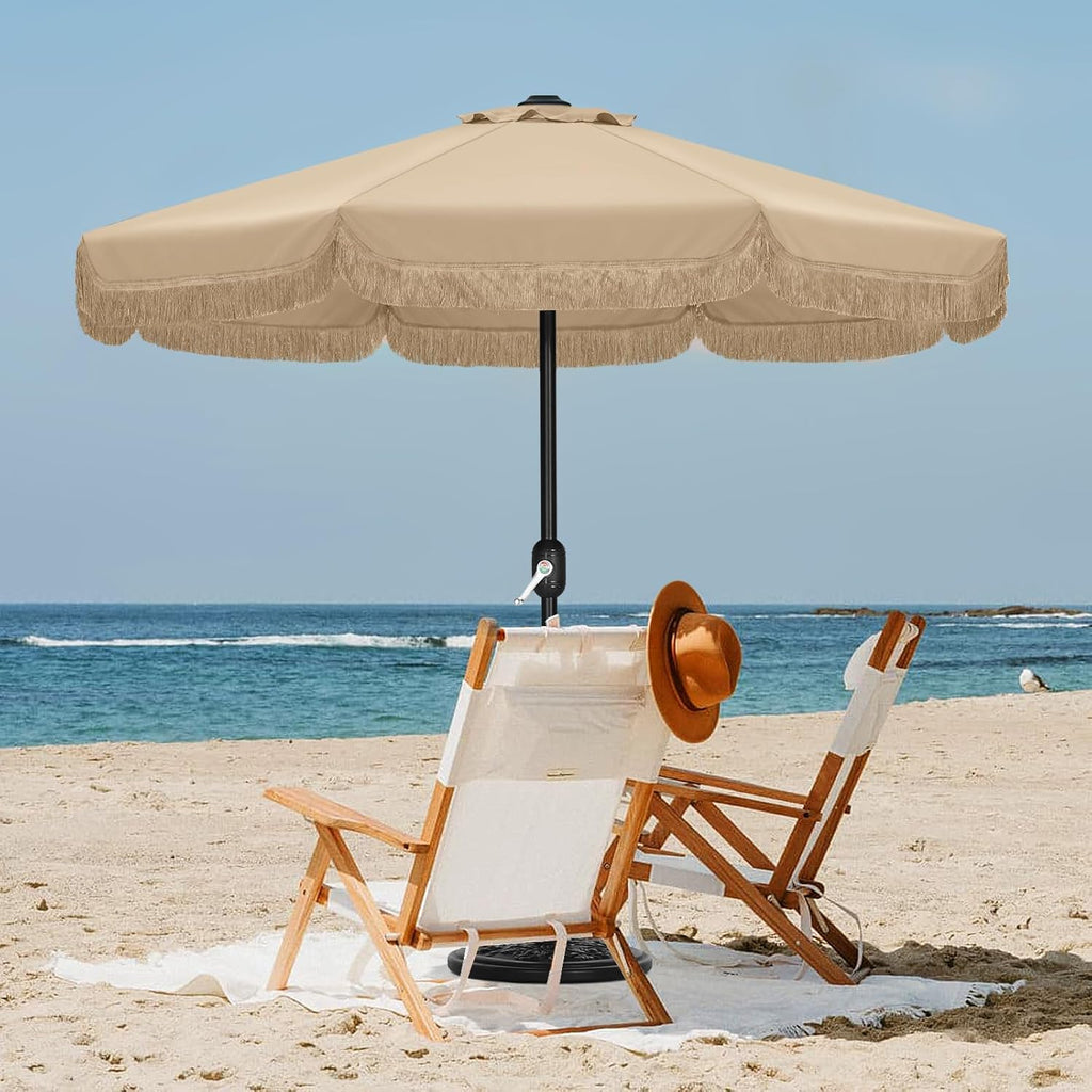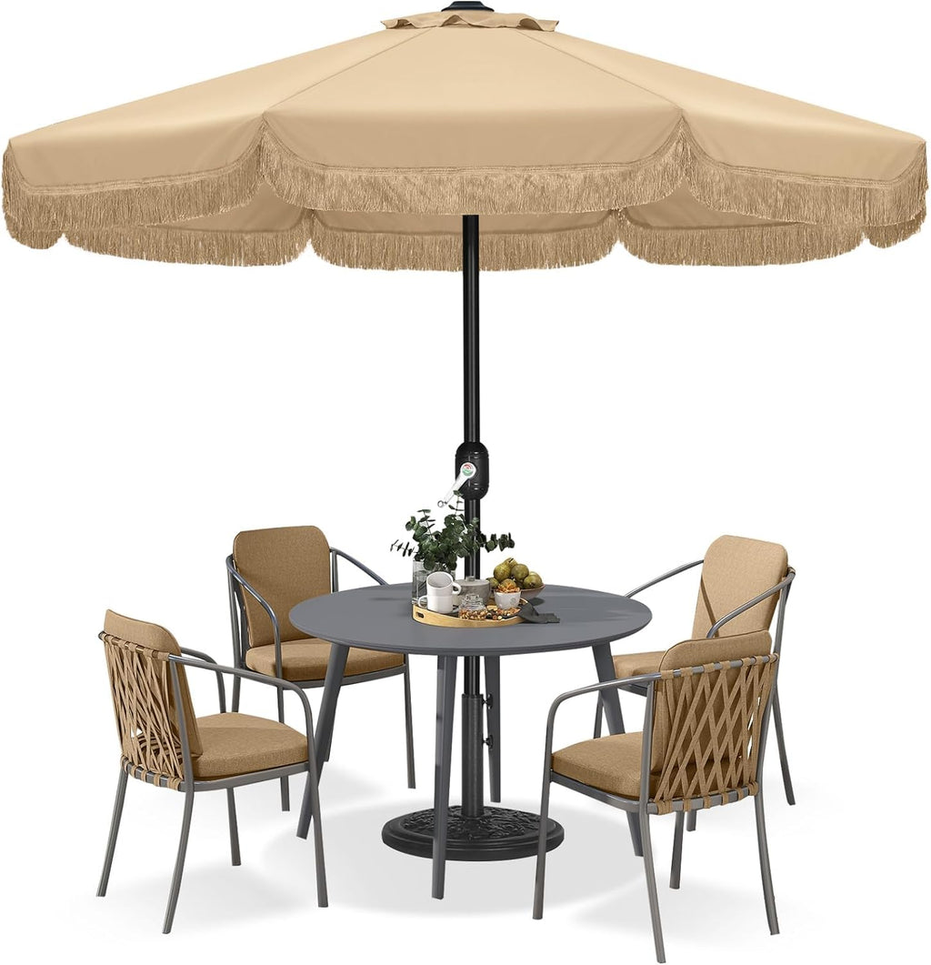 ABCCANOPY Patio Umbrella 9FT Outdoor Tassel Umbrella for Garden Lawn Pool Yard Table