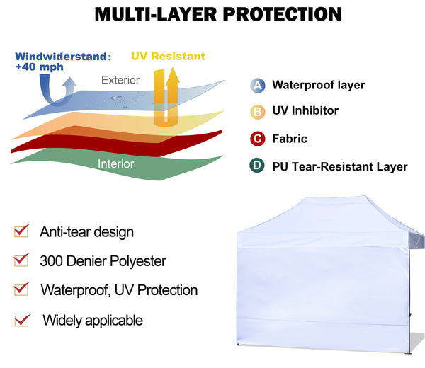 [DURABLE MATERIAL] 300 Denier Polyester with PU lining, which is 100% waterproof and able to block 99% UV sun rays.