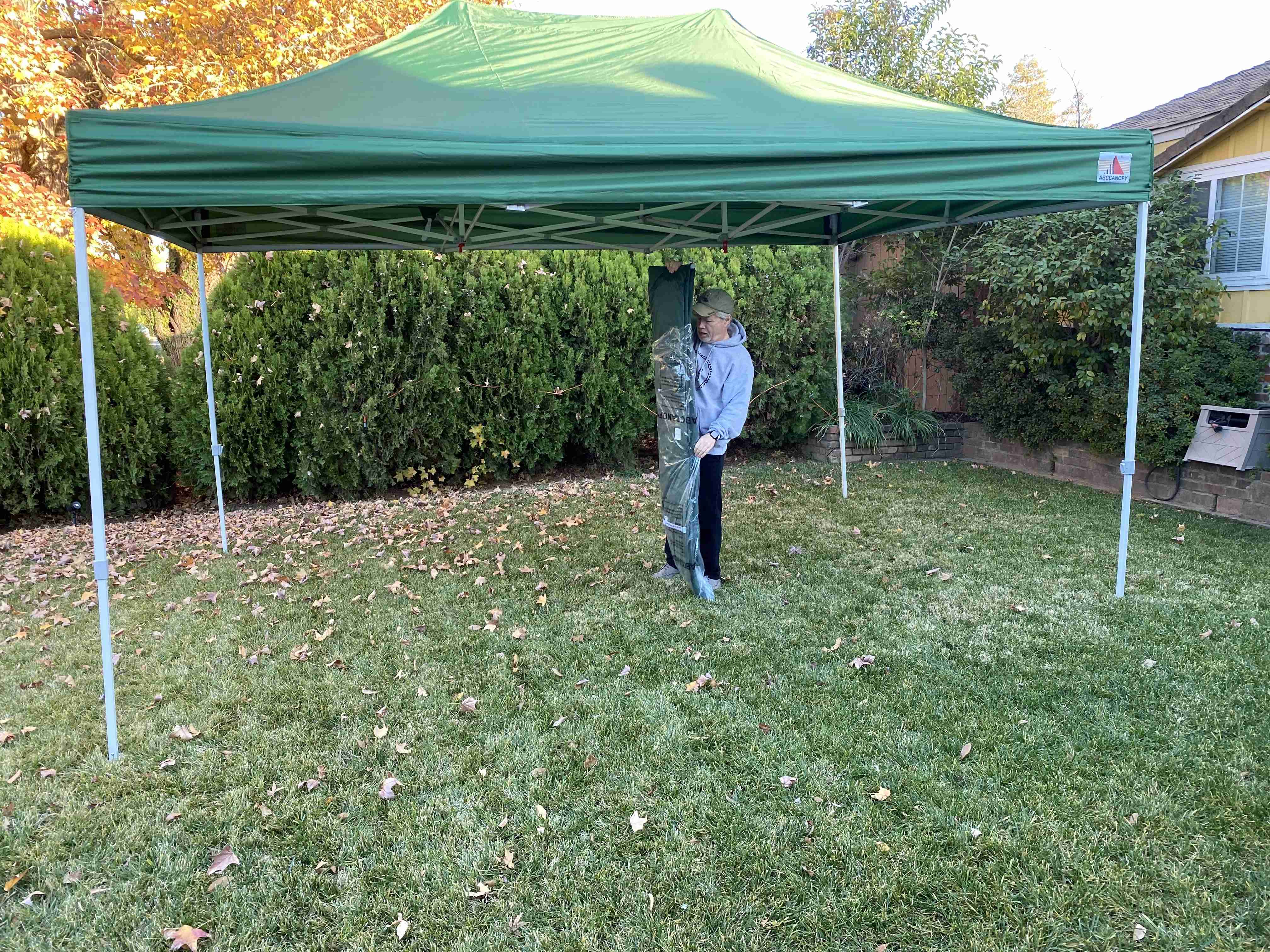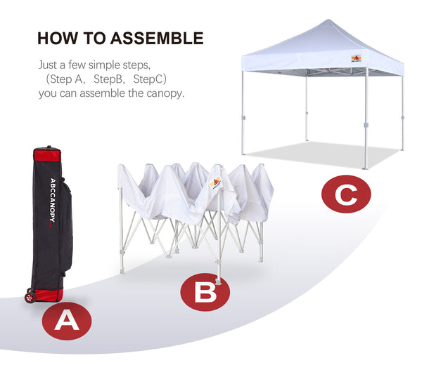 - [Highlight and Technology] (1)Special designed peak tensioner design, lift the top higher to ensure the top tight and firm. Will not collected water in rainy days. Beautiful and Safety. (2)ABCCANOPY oversize designed roller bag allow you to easily put frame and top inside. The flexible big wheels, conveniently and smoothly. Satisfy your need and long lasting.