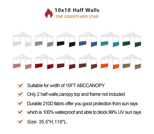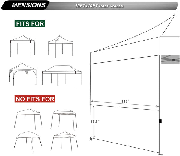 - Two Half Walls Can Be Used For 10'x10', 10'x15', 10'x20' Pop Up Paty Tent Canopy