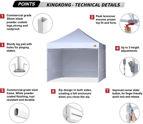 10 x 10 Ft Full Truss Structure (1mm thick square shaped legs and super strong cross truss) is commercial grade, bigger and strong wind. Definitely stands out in busy U.S. trade shows and market stalls.