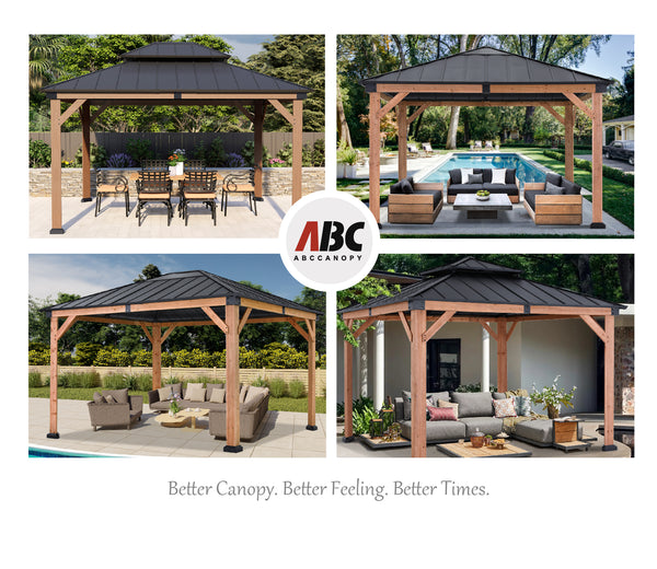 - Cedar Wood Materials & Triangular Supports Design: The four legs are made of cedar wood, which is more stable and robust than other common materials. At the same time, the four corners connecting the legs to the roof were designed with triangular supports. It enhances the overall stability of the wood gazebo.