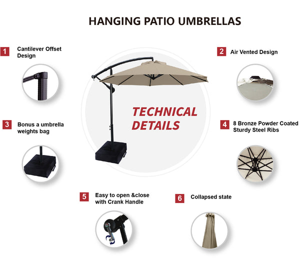 - 9/10 FT cantilever patio umbrella for outdoor area