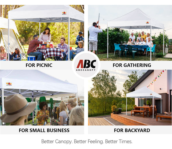 No tools required, could be set up by 1 or 2 people. The latest thumb button release levers technology, makes set-up and close real safe, comfortable and reliable. Three height positions for your choice, clearance height from 6.4ft, 6.7ft to 7ft. Peak height from 10.5ft, 10.8ft to 11.1ft. Just adjust it to your expected height.