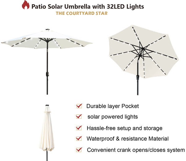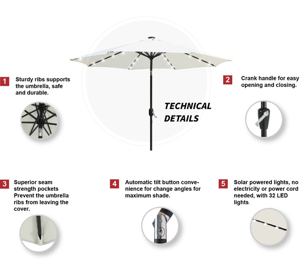 - Convenient crank opens/closes system and handy push button tilt, keep the sun at the back in the daytime. Turn the crank to open and close the umbrella, press the button on the tilt to adjust the direction, there are no particularly complex steps, you can easily enjoy outdoor life.