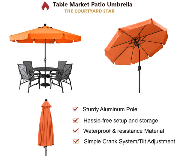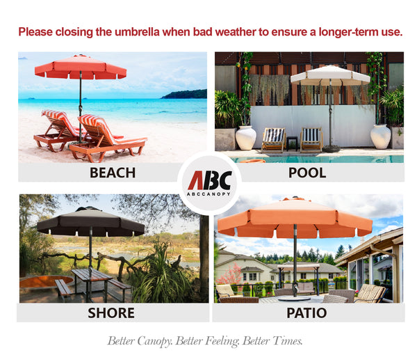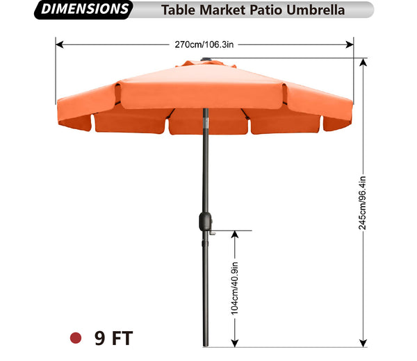 - 9 feet diameter is wide enough to your 42" to 45" round, square or rectangle table with 2 to 4 chairs, ideal for both residential and commercial locations.(Note£ºThe umbrella base is not included, please purchase separately if you need it.