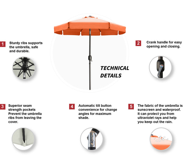 - Equipped with simple crank and tilt button. The convenient crank lifting system makes it easy to raise and lower the canopy. Push button tilt for more angles of shading, block the sun well, allowing you and your family to enjoy a cool and comfortable outdoor party or tea time.