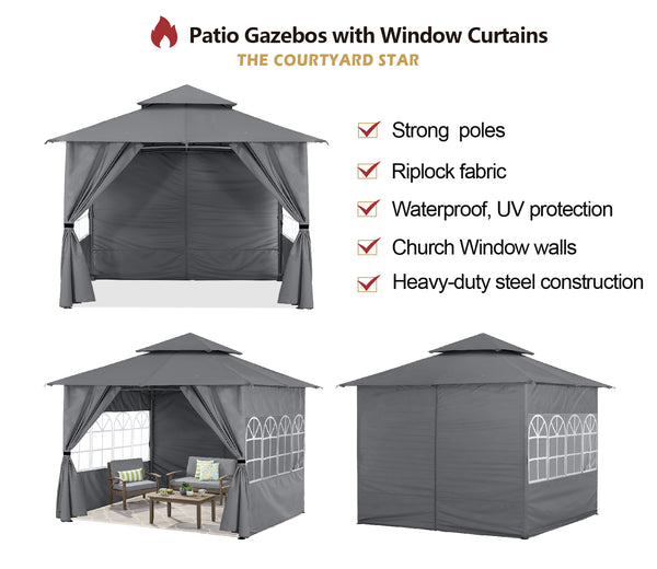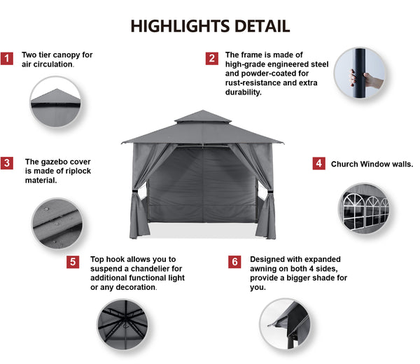 - [Durable Fabric] The rip-lock canopy top and waterproof sidewalls keep the gazebo dry and durable.And it can withstand various weather elements.The church window is made of thick nylon material and it can block water away.